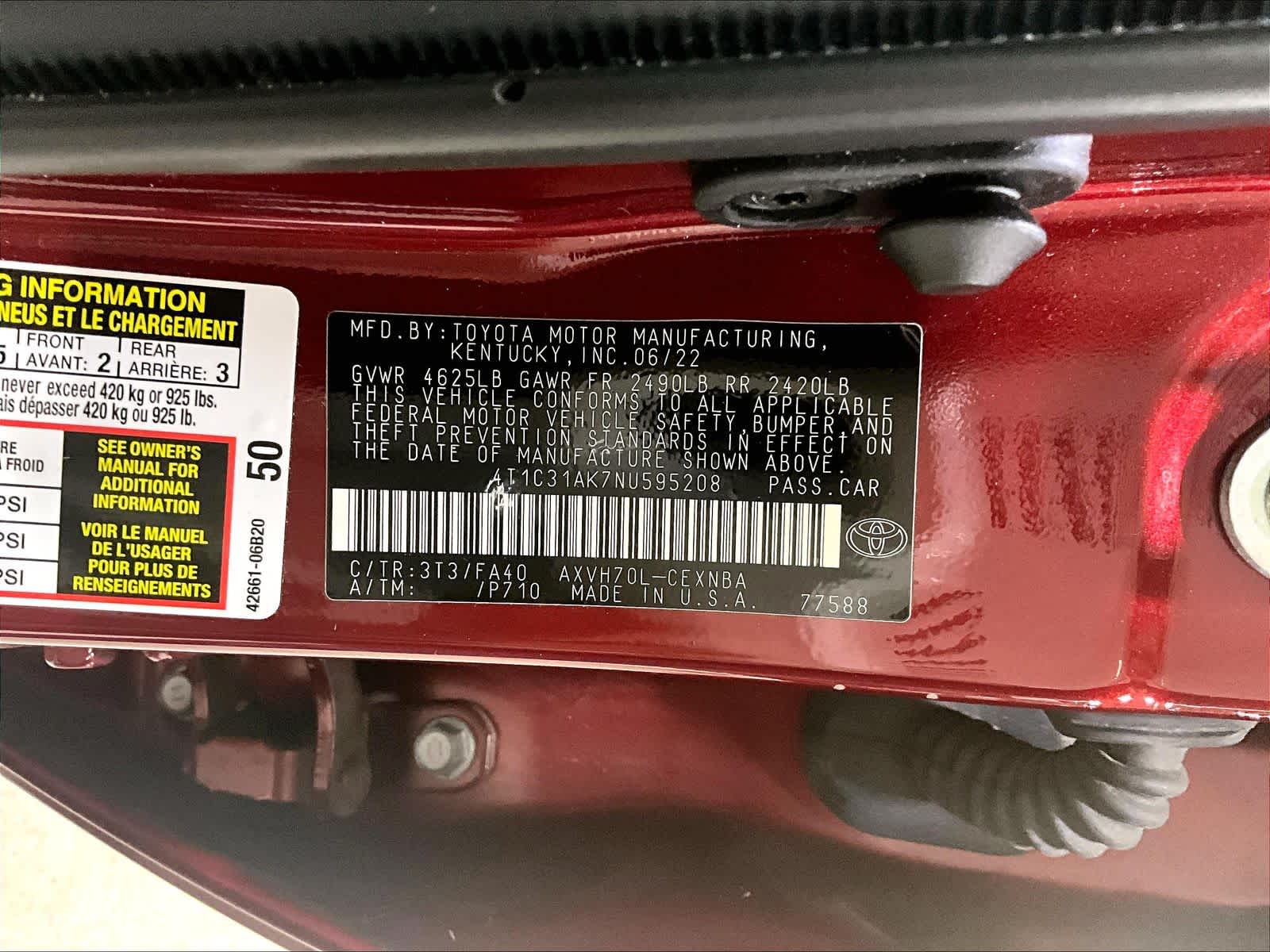 Hybrid LE | 10,788 milesStock # N0300195A | VIN # 4T1C31AK7NU595208