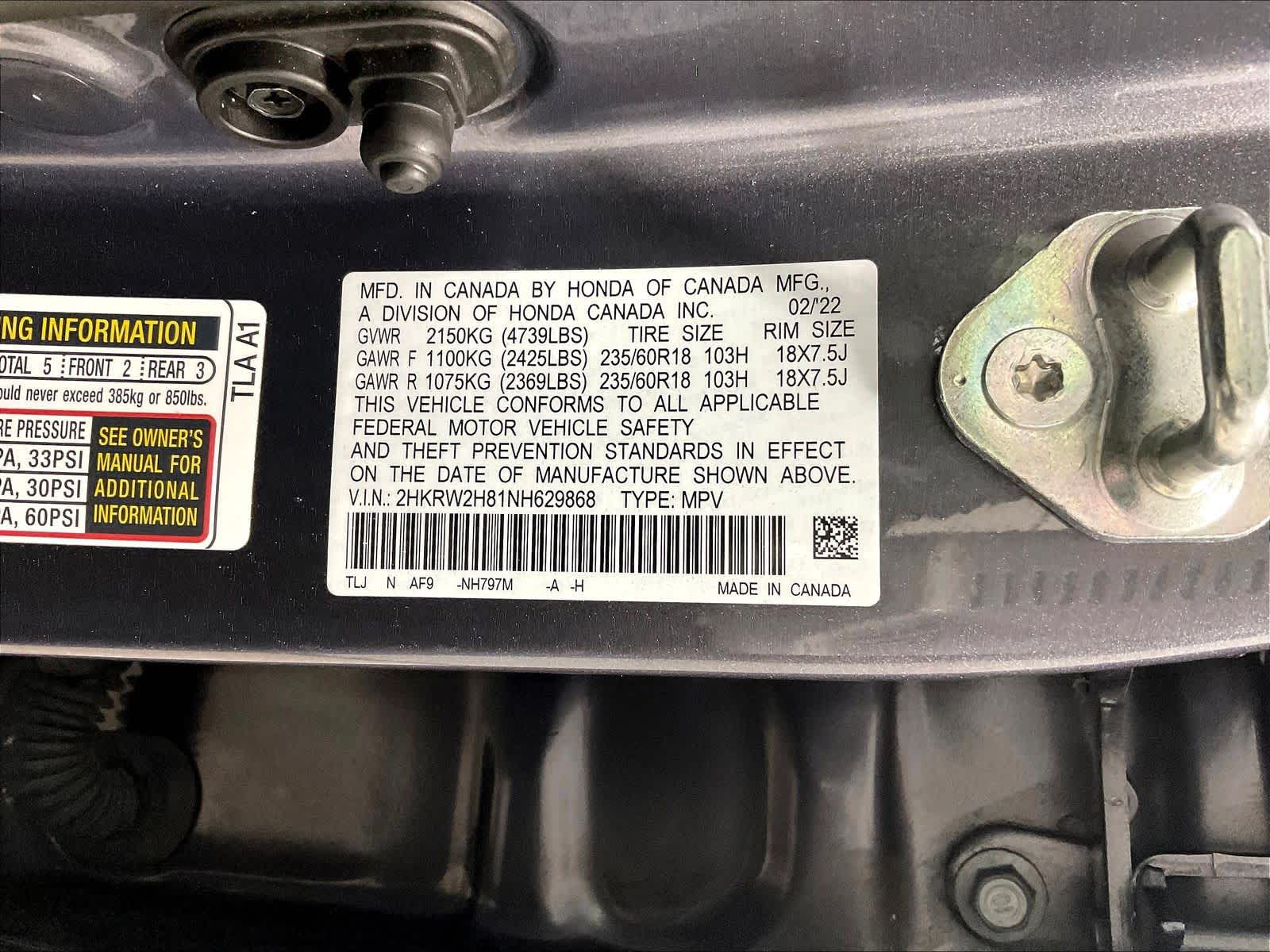 EX-L | 46,034 milesStock # U0500313 | VIN # 2HKRW2H81NH629868