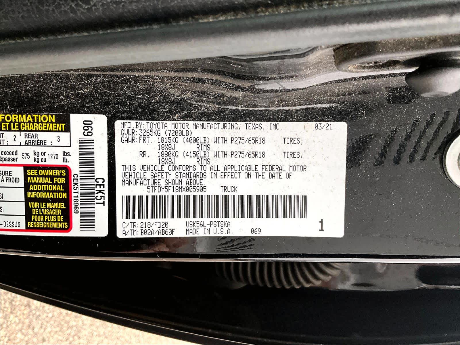 SR5 | 87,984 milesStock # T900105A | VIN # 5TFDY5F18MX005905