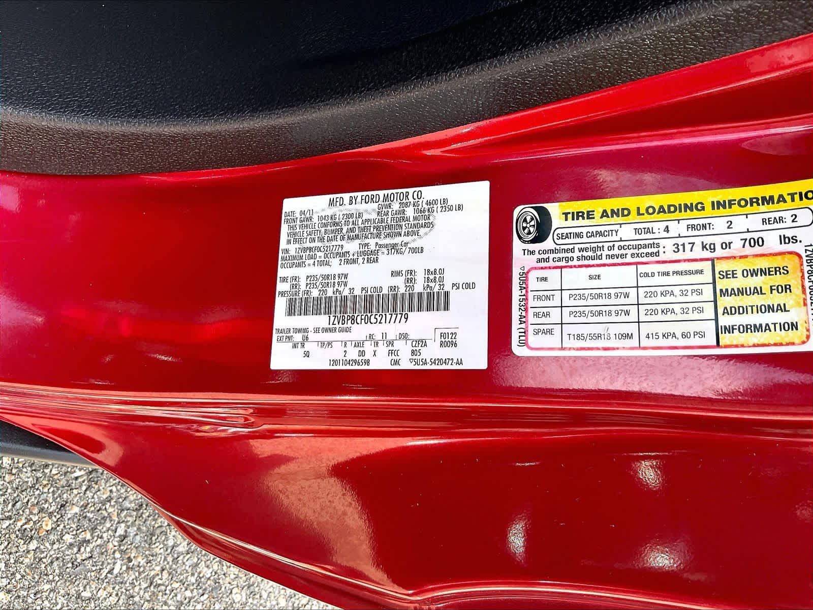 GT Premium | 33,724 milesStock # U0900230 | VIN # 1ZVBP8CF0C5217779